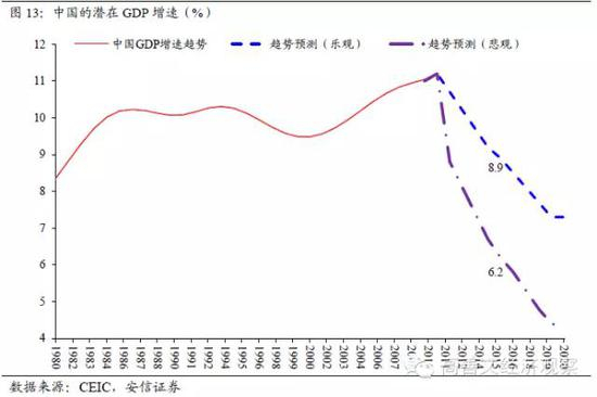 从以上的分析中,我们知道中国经济可能正处于潜在增速下降的起点上,新的十年中经济增速的趋势不容乐观。