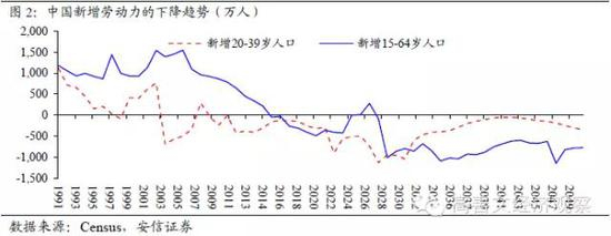 中国目前可能已经站在劳动力供应收紧这一趋势的初期,劳动力供应在未来的下降趋势是可以通过人口学数据进行具体测算的。美国的人口统计局对各国的人口预测具有很强的权威性,我们也可以根据中国国家统计局等机构的调查数据进行推算。