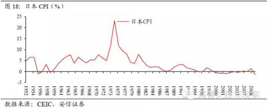 值得注意的是,日本经济增速的下降是以台阶式跳跃的方式完成的。与美国的情况类似的是,在70年代初第一次“跳台阶”之前的近十年时间中,日本的通货膨胀长期维持在5%这一较高的水平附近,其原因主要来自日本经济在60年代初期跨过刘易斯拐点,导致劳动力的结构性短缺并产生工业、农产品部门的“生产率差异性通货膨胀”。在70年代初日本经济初显疲弱时,日本政府采用的反周期政策给通货膨胀火上浇油,最终在原油价格暴涨的外生冲击之下,日本经济增速从10%下降到5%的水平上。