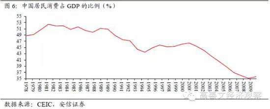 在2002年之后,伴随着投资占比的上升,居民消费占GDP的比例出现了趋势性的下降。这一状况在2009年已经开始逆转,我们预计消费占比的提升将是未来十年的一个趋势,其水平可能从目前的35%左右恢复到90年代的45%左右。