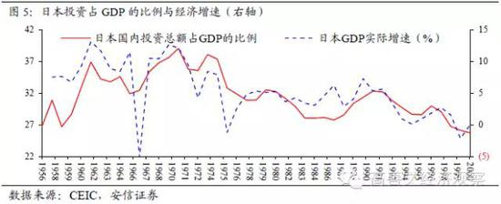 投资占比的提高通常伴随着经济增速的平台上升。中国经济增速自2003年之后的平台较90年代有所提升。日本50年代以来的经济增速的平台也与投资占比有非常密切的联系。