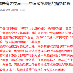 注释:此文为高善文2010年10月份撰写的一篇研究报告,2019年4月18日再次发布,并发布编语表示,现在翻阅和检视当时的推断过程,许多假设和预测的细节并不准确,但一些关键的想法似乎差强人意。例如我们当时认为造成长期经济减速的因素来自劳动力、技术进步、资本积累和资本系数(即经济增长对资本积累的弹性)等所有关键因素的放缓。
