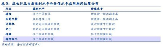 而这对于我们发掘成长股投资价值有何意义呢?我们认为在动态PB-ROE轨迹可以避免关于成长行业低ROE和高PB的困扰,而从行业本身的特性出发发掘其配置价值。根据这个过程,结合下文对各成长行业盈利和估值水平,我们可以认为传媒和国防军工位于动态PB-ROE模型中低ROE低PB调整区域,计算机和电子行业盈利和估值水平已经度过低盈利低估值区域;医药生物已经进入上行周期中段。建议关注医药生物、电子和计算机等领域。