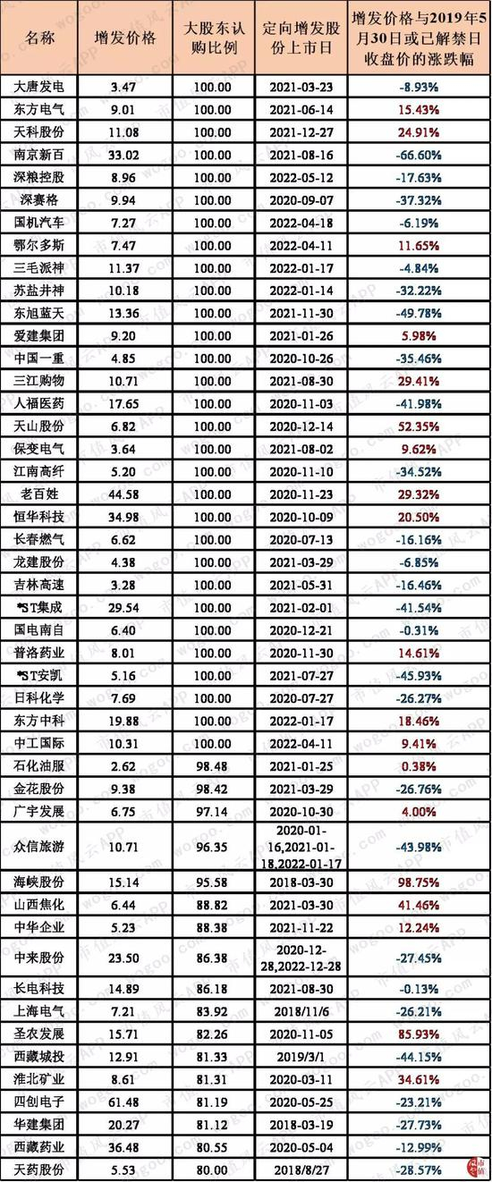 风云君选取了大股东认购金额比例超过80%的上市公司,请看下图: