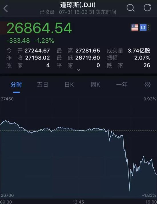 受这些言论的影响,美股短线大幅下跌。