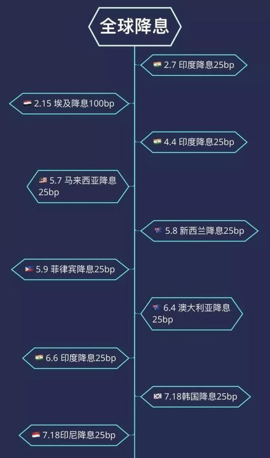5月8日,新西兰联储实施了自2016年11月以来的首次降息,拉开了发达国家降息的序幕。6月4日,澳大利亚联储宣布降息25个基点,也是近三年来的首次降息,并将基准利率直接降到了历史低位。
