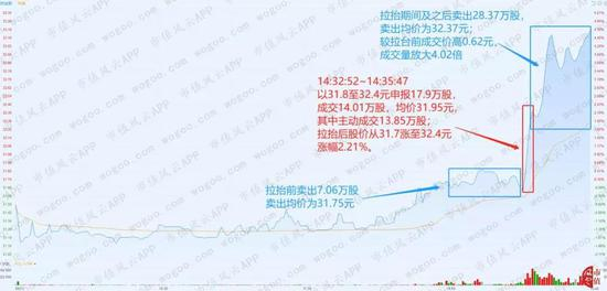 在拉抬后直至收盘期间其卖出28.37万股,卖出金额918.35万元,均价32.37元,较拉抬前卖出均价高0.62元,卖出数量较拉抬前放大4.02倍。