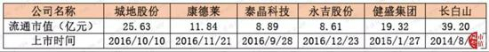 其次,这6只股票的流通市值偏低,2017年三季度的流通市值在8.6亿至39.2亿之间,除了长白山,其他均属于同期上市公司中资金盘偏小的股票,容易被资金带动。