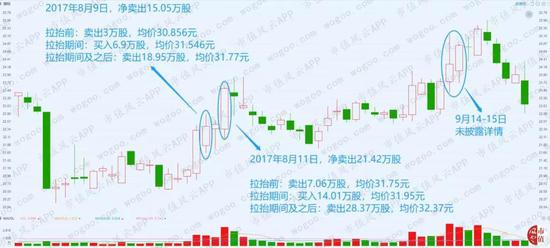 与前两交易日踊跃上涨的态势不同,8月9日开盘至下午临近尾盘间呈现下跌趋势,14:41至14:44,该股出现连续大单成交,将股价从30.7元推至31.44元,蔡汝洪账户组在此期间卖出3万股,卖出金额92.57万元。