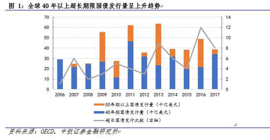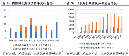 近年来,全球各国政府正在增加超长期国债发行量,锁定低借贷利率,全球有14个国家政府发行了40-100年期的国债。自2009年以来,政府的超长债券发行量显着增加。超长期国债一般是指发行期限在20年以上的国债,其中还包括永久国债或无期限国债,国际上发行、流通范围较广的多是30年期的超长期国债,50年期以上的超长期国债又被称为马士撒拉(Methuselah)债券。金融危机后,英国、中国每年都会发行50年期国债,日本每年发行40年期国债,属于定期有规律常态化发行。2014年以来,加拿大、西班牙、瑞士、法国、比利时、意大利发行了50年期的国债,比利时、爱尔兰、奥地利发行了100年期国债。新兴市场方面,中国(1996)、菲律宾(1997)、墨西哥(2010)、阿根廷(2017)发行过美元计价的100年期的外国债券。2019年7月,西班牙财长表示会扩大50年期国债发行量。8月,瑞典国家债务局发布消息称,正在研究发行为期100年的超长期限债务的可能性,当前瑞典国债券收益率曲线全部位于负利率区间,此时正在考虑是否效仿其他国家锁定目前处在历史低位的政府借贷成本。