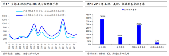 回顾A股历史波幅,已经在逐渐收敛。近几年A股的波动率和换手率都在下降。从波动率来看,上证综指在1991-2000年之间平均振幅为126%,2000-2010年之间降至82%,2010年之后进一步降至42%,近3年(2017年以来)上证综指的平均振幅仅32%。对比海外成熟市场指数波动率,2010年以来道琼斯指数平均振幅为22%,富时100指数为20%,日经225指数为31%,恒生指数为32%,台湾加权指数为23.8%,长期来看未来A股波动率中枢仍有下行空间。另一方面,近几年A股的换手率也在下降,逐渐向成熟市场靠拢。从2005年以来,用自由流通市值计算的A股换手率在302%-1230%之间波动,历史均值为584%,近3年A股整体换手率均值为428%。用沪深300指数成分股来看,股市换手率下降趋势更明显。2005年以来,沪深300成分股换手率在207%-997%之间波动,历史均值为412%,近3年降至275%。
