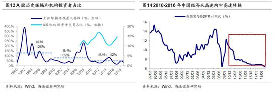 股市波动幅度下降,源于GDP增速放缓、机构投资者占比提升。股市指数长期波动幅度中枢降低主要由于两方面原因:第一是各国/地区的长期GDP增速中枢下移。回顾历史,各国各地的股指年化涨幅与GDP名义年化增速表现出高度相关。这其实是因为,长期看盈利是股市上涨的核心驱动力,而企业盈利与名义GDP增速相关性较强,详见《牛市不需要基本面?误会-20190321》。第二是各国股市中机构投资者占比提升,回顾各国股市发展的历史规律,机构投资者占比越高,投资者更加理性,市场波动率越低。具体来看: