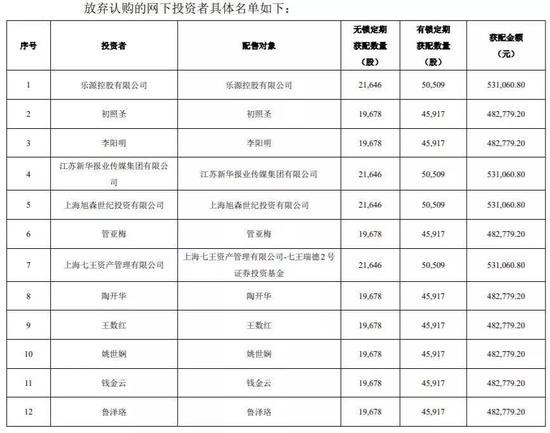 而在渝农商行网下申购新股中,网下申购全部弃购者有上海凤凰企业(集团)股份有限公司 和江苏新华报业传媒集团有限公司,均获得配售7.22万股,金额53.11万元。