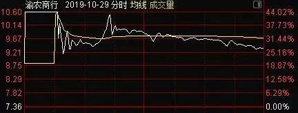 昨日,全国首家“A+H”股上市的农商行,也是全国最大的农商行重庆农商行上市了。当日一开盘,渝农商行股价迅速涨至10.60元/股,涨44.02%,顶格涨停,随即临时停牌,总市值一度超1200亿元。