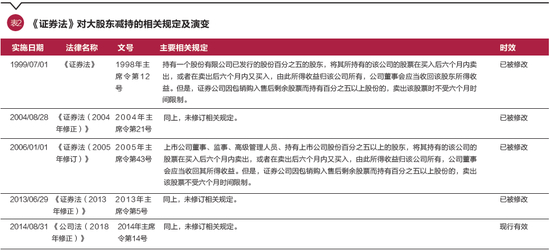 从2000—2018年相关减持法律法规演变历程可以看出,《公司法》主要对股份限售及其期限进行了规定,《证券法》主要对短线交易进行了限制。上述法律主要变化出现于2006年1月1日,伴随着上市公司股权分置改革的实施,《公司法》和《证券法》相应作出调整,允许上市公司董事、监事、高级管理人员在任职期间转让股票,但限制其每年转让比例并将其纳入短线交易限制范围。另外,上市公司股权分置改革以来,监管部门相继发布与大股东减持相关的规范性文件,对上市公司大股东、董监高减持股票的限售期、减持方式、减持比例、减持价格以及相关信息披露要求进行规定。其中,2015年以前监管部门发布的规范性文件相互补充、未有重大变化,主要规定包括董监高在本公司股票上市交易之日起1年内或在离职后半年内不得转让股票,此外还对大股东、董监高减持价格和减持意向披露进行了要求;2015年7月,受二级市场影响,监管部门发布规范性文件要求上市公司大股东及董监高在6个月内不得通过二级市场减持股票;6个月后的2016年1月,监管部门发布规范性文件对大股东及董监高的减持限制、通过集中竞价交易方式的减持比例以及预先披露减持计划进行了规定;2017年5月,监管部门发布规范性文件对上市公司大股东及董监高通过大宗交易方式的减持比例、非公开发行的股份在限售期满后的减持比例等进行了补充规定,并对预先披露减持计划进行了更加详细的规定。