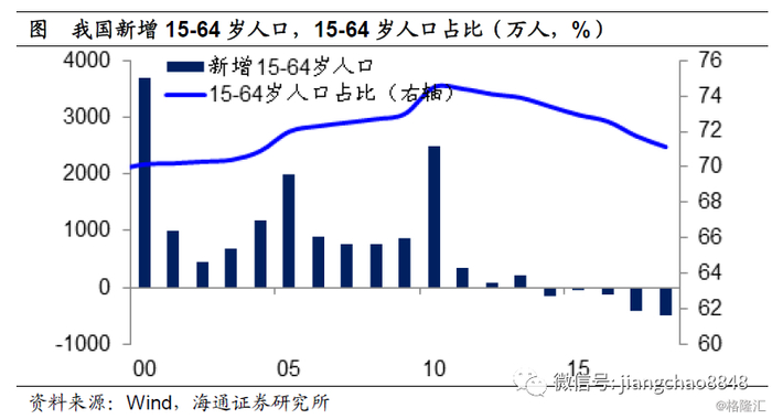 因而在00后达到工作年龄人口的2015年左右,中国的劳动力人口出现了负增长。