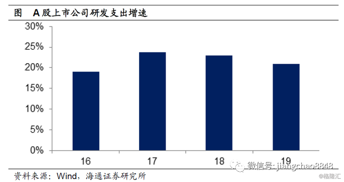只不过,随着人口数量红利向工程师红利的转变,需要中国的企业改变发展模式,从简单的劳动密集型转向技术密集型,转向靠研发创新发展。而这恰恰是目前正在发生的变化,中国的研发强度已经超过了2%,A股企业的研发支出增速连续3年保持在20%以上,而且贸易摩擦的爆发加剧了这一趋势,这说明中国的企业正在向研发创新转型,其实就可以利用好工程师红利。