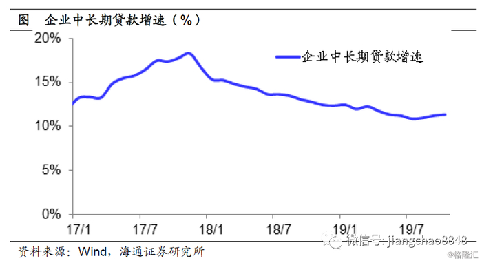 我们发现,最近几个月社融增速下滑的主要原因是短期融资,而中长期融资的表现稳定。尤其是企业中长期贷款,自从8月份起已经连续3个月企稳回升,这意味着企业部门的投资需求可能已经开始了改善。