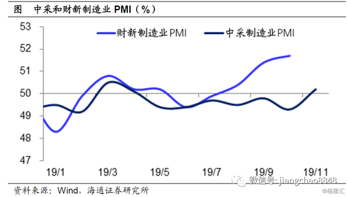 而刚刚公布的11月中采制造业PMI回升至50.2%,为年内次高值。制造业PMI也是一个环比指标,在50%以上就位于扩张区间,这意味着11月的工业环比增速也有望出现明显改善。