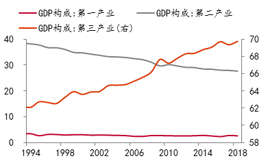 这三个国家的衰落,与其三次产业结构变化有关。如南非第二产业的比重下降过快,从1994年的38.2%降至2018年的27.7%。南非经济的衰退,大背景是80年代苏美对其进行经济制裁,之后到了1994年,长期执掌南非政权的布尔人被赶下了台,黑人当家作主,曼德拉当选南非首任黑人总统。这又使得部分白人精英逃离南非,计算机、生物医药、航天科技、军事科技、纳米技术、工业制造等高科技人才流失,使得南非在全球的经济地位逐步下移。例如,在南非的出口结构中,工业品出口占比从2007年的77%,下降至2018年的64%。