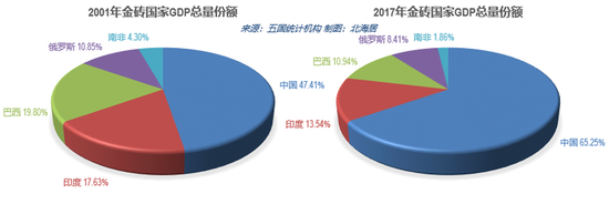应该说,金砖四国外长于2006年联合国大会期间举行了首次金砖国家外长会晤,开启金砖国家合作序幕。2011年,南非正式加入金砖国家,英文名称定为BRICS,于是,金砖四国变为金砖五国。在金砖五国中,南非、俄罗斯、巴西都曾被纳入到高收入经济体中,但之后则由于出现经济危机等原因,本币大幅贬值,进而又退居为“中高收入经济体。”