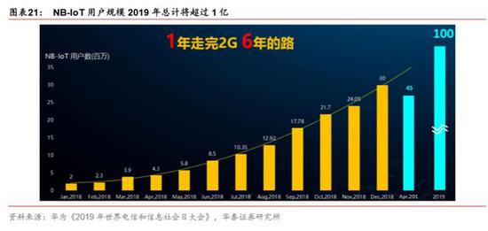 我们认为 2019 年 NB-IoT 行业获得了快速发展,用户数有望较 2018 年提升 3 倍以上, 预计随着 2020 年基站数的大幅提升,为行业发展提供更进一步的支撑,加速技术成熟度 提升,用户数有望保持快速增长。