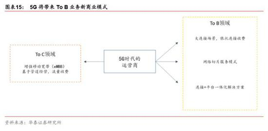 5G 将为运营商带来 To B 增量业务。2018 中央经济工作会议提出 2019 年重点工作任务, 其中特别指出加快 5G 商用步伐,加强人工智能、工业互联网、物联网等新型基础设施建 设。三大运营商积极响应国家号召,加快 5G 建设,努力拓展新的业务增长点,推进 5G 战略部署,从 2C 端业务逐步转向 To B。5G 应用场景下的物联网、车联网、工业互联网 等方向,结合大数据和人工智能技术的发展,有望成为运营商拓展 To B 业务的增长点, 助力营业收入进一步提升。