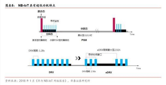 3. NB-IoT 物理层精简了很多物理信道和信号,减少了空口令开销。 4. NB-IoT 可以实现终端设备能够长期休眠,并在激活后能快速接入核心网。