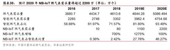 测算 NB-IoT 智能燃气表和水表 2020 年的新增需求: