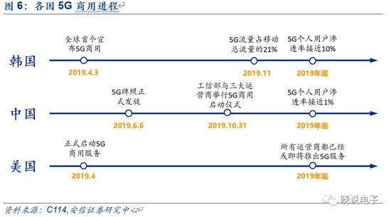 美国:2019年4月Verizon使用毫米波推出5G,正式启动5G商用服务。2019年美国所有运营商都已经或即将推出5G服务。