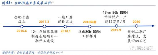 ✦兆易创新(603986.SH)成立于2005年,是我国本土存储器、控制器芯片设计公司。产品包括NOR Flash、NAND Flash及MCU,广泛应用于移动终端、消费电子、个人电脑、电信医疗及办公设备、汽车电子及工业控制设备等。目前,公司正加紧在DRAM领域的布局。根据公司公告,2017年10月公司与合肥产投签署合作协议,开展12英寸晶圆存储器研发项目,切入DRAM产品线。2019年4月,公司与合肥产投、长鑫集成签署《可转股债权投资协议》,以可转股债权方式对项目投资3亿元人民币。在合作模式上,公司与合肥长鑫为代工关系,公司自研消费类电子、工业控制以及汽车类DRAM利基型产品,合肥长鑫主要针对大客户做通用型的产品(根据兆易创新年报及公告)。合肥长鑫是大陆首家DRAM IDM生产商,2016年成立,2017年与兆易创新合作建设12英寸DRAM晶圆厂;2018年1月一期厂房建设完成;2018年底推出8Gb DDR4 工程样片;2019年9月正式投产19nm工艺的8Gb DDR4;预计2021年完成17nm技术研发(根据合肥长鑫官网)。