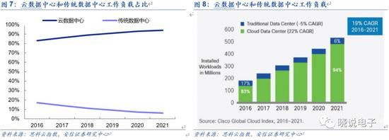 根据思科云指数报告,2021年,云流量在全球流量中的占比将高达95%。到2021年,云数据中心将处理94%的工作负载和计算实例,6%将由传统数据中心处理。从2016年到2021年,数据中心的整体工作负载和计算实例将增长2.3倍;同一时期,云工作负载和计算实例将增加2.7倍。