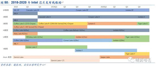 从Intel芯片发布的进程看(SP和X系列适用于服务器,S、Atom系列适用于桌面,H、U和Y系列适用于笔记本),近年来Intel服务器CPU发布较为密集,未来2年,Intel服务器 CPU新品发布将显著刺激服务器的更新与升级需求。
