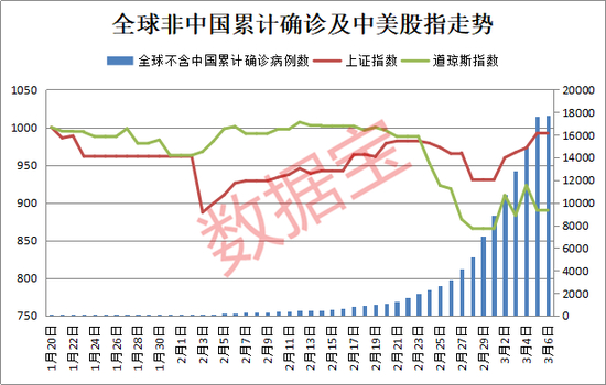 日经225指数连续三周下跌,道琼斯工业指数2月以来累计跌幅超过了7.5%。外围股市陷入集体大跌的局面,这与疫情还在不断地恶化有密切关系。截至北京时间3月5日19:30,全球(不含中国)新冠肺炎累计确诊超过15000例,韩国累计确诊6088例,伊朗和意大利均超过3000例,日本1037例。国内3月5日新增确诊145例,湖北除武汉以外新增0例。