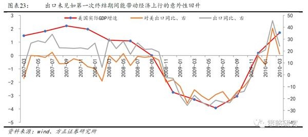 第一次美股牛市终结中后期,A股演绎遵循了路径②,在2、3月出口意外回升后并未能持续,很快出口便重新滑落至低位水平,哪怕当时在投资有一定支撑和消费稳定的情况下,经济的上拉效应都无法抵消出口的下拉影响,最终经济预期变得悲观。