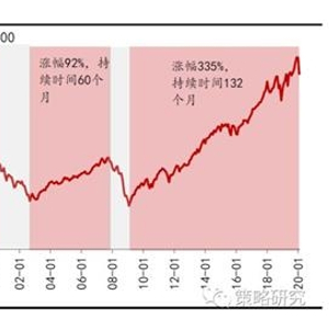 1980年以来,美股开启了三轮超级大牛市。第一轮为1982年3月至2000年8月,持续时间222个月,标普500指数从113点上涨至1510点,涨幅达1336.2%。随后互联网泡沫破裂,超级牛市终结,美股进入调整期,熊市持续了26个月,下跌幅度42.8%;第二轮为2002年10月至2007年10月,标普500从803点上涨至1546点,涨幅92.3%,持续时间60个月。随后次贷危机爆发,超级牛市再次终结,指数回调56.7%,熊市持续17个月;第三轮为2009年3月至今,标普500从681点上涨至2972点,涨幅达335%,持续时间132个月。