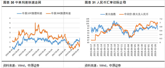 第三,中国资产定价更为合理,横向比较风险性较低。经过本轮避险情绪的影响后,美债收益率行至历史新低:3 月 9 日,美国 10 年期国债收益率先后跌破 0.5%、0.4%,已连续多日位于联邦基金利率下方,与 3 个月期国债收益率盘中多次倒挂,美债收益率曲线形态严重扭曲; 中国国债收益率曲线斜率仍然为正,在全球央行纷纷下调基准利率引导国内收益率曲线扭曲化之际,中国利率期限结构更为合理,横向比较风险性更低。同时美元指数下跌,推动人民币汇率显著企稳回升,表明国际市场对人民币资产的认可度在提升。
