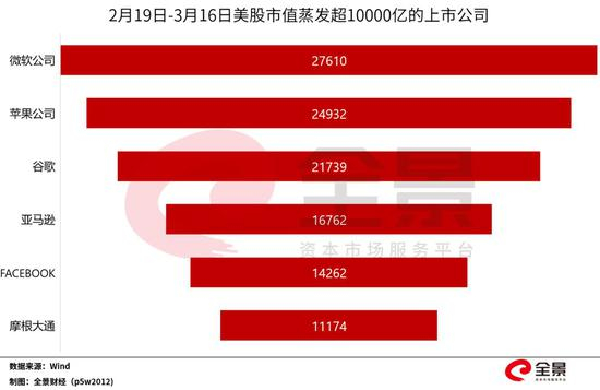 在石油崩盘、疫情爆发的两大“黑天鹅”叠加之下,美国股市崩盘,投资者恐慌情绪飙升,即使是微软、苹果、谷歌、亚马逊、Facebook等科技巨头亦遭到猛烈抛售潮,自2月19日至今,总市值蒸发均超10000亿元。