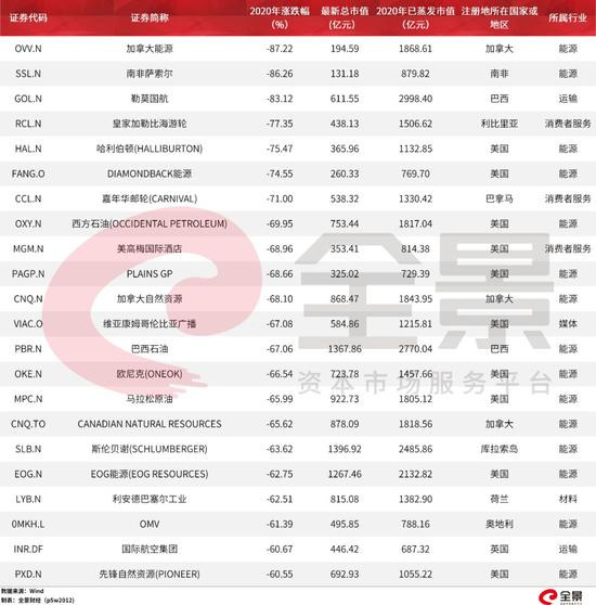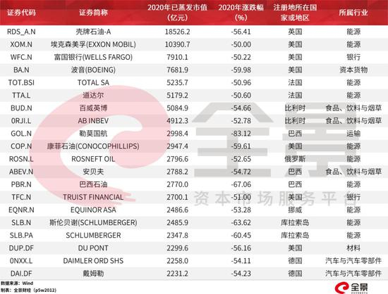 全球2020年跌幅最大22只千亿级上市公司