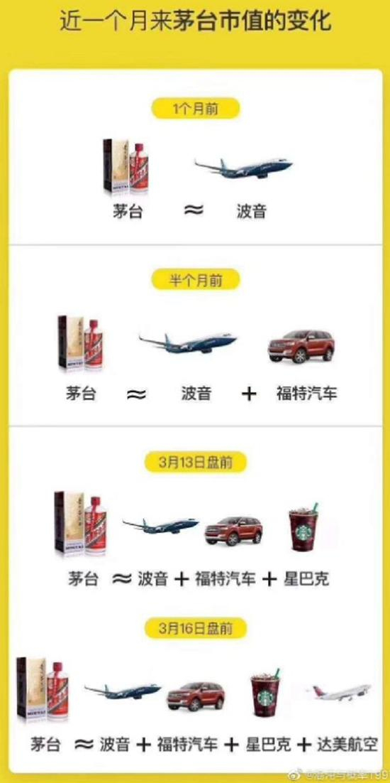 另外,美国军工巨头—波音飞机在经历连续暴跌之后,2020年内总市值蒸发亦高达7682亿元,最新总市值仅剩5100亿元,已不足贵州茅台市值的50%,昔日全球航空霸主正在迅速陨落。