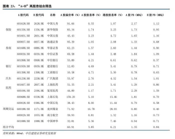4.1 维度一:A+H高分红且低估值个股