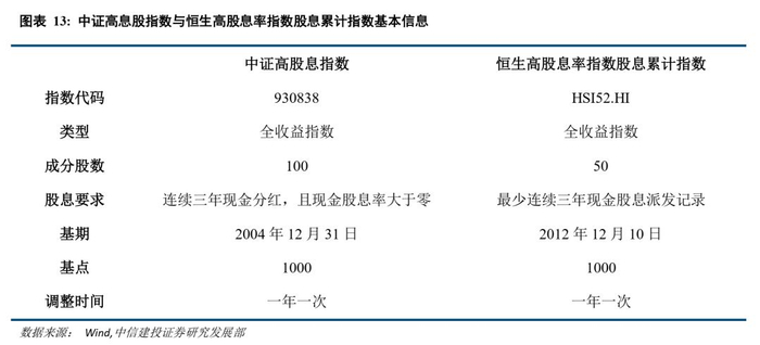 针对A股和港股市场,我们挑选了两个股息跟踪指数,分别是中证高股息精选指数和恒生高股息率指数R。这两个指数均为全收益指数,全收益指数隐含了分红再投资这一过程,因此全收益指数相对于普通股票指数来说更能反映投资的真实回报。