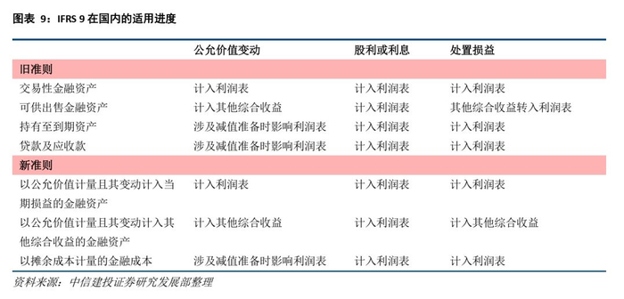 IFRS 9准则对金融工具的收益确认方式进行了调整,这一举措有望直接利好高股息率标的。新旧准则的差异主要体现在以下三方面: