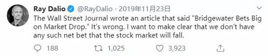 但随后,达里奥在社交媒体上否认了桥水看空股市,并澄清桥水没有进行任何针对股市下跌的“净赌注(Net Bet)”。
