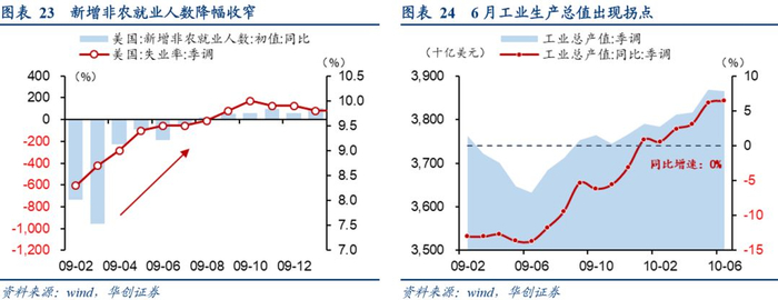 在大规模刺激政策下,基本面逐渐触底,经济出现复苏迹象。就业方面,4月新增非农就业人数大幅好转,2009年一季度虽然失业率仍在不断上升,但增幅逐渐收窄,并于6月出现拐点;制造业方面,进入一季度后,工业生产总值同比增速由负转正,6月触底后一路升至正值;消费方面,3月-6月,消费者信心指数实现四连升,消费者信心指数的大幅抬升,带动零售销售额逐步回暖。整体来看,虽然09年上半年的经济数据大部分仍表现继续萎缩,但萎缩程度已出现明显好转迹象,消费者信心大振,经济复苏迹象显露。