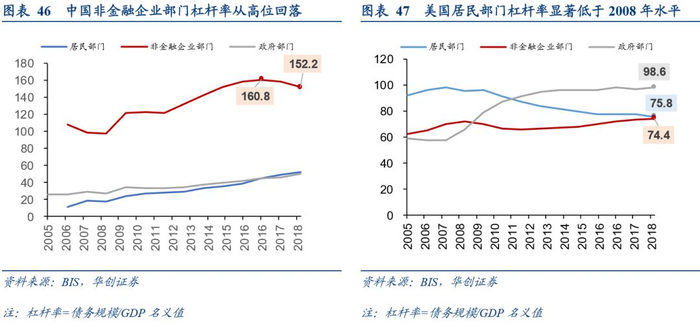 从债务周期角度来看,但当前无论中国还是美国,所处债务周期均与2008年之前有很大差异。其一,美国私人部门的杠杆率水平要明显低于2008年。2008年金融危机之前,如上文回顾,引起次贷危机的是房地产市场的快速发展带动居民部门杠杆难以为继;而从当前来看,美国居民部门杠杆率水平2008年之后显著回落,非金融企业部门杠杆率较2008年之前稍有提高,也即美国居民部门的债务风险要远小于2008年之前,企业部门资产负债情况要稍弱于2008年之前,私人部门总体杠杆率水平不高,较高的是政府部门杠杆率;其二,对中国而言,2017年去杠杆政策以来,非金融企业部门杠杆率有所回落。当前经历了数年的结构调整,企业部门杠杆率水平有所回落,风险承受能力有所增强,居民部门和政府部门杠杆率仍在处于上行趋势中,但上行斜率较为平缓。在“房住不炒”政策基调下,避免“大水漫灌”,居民部门杠杆率有望维持稳定。政府部门整体杠杆率水平不高,但中央和地方政府可能存在较大差异,地方政府杠杆率高于中央政府,叠加隐性债务问题,地方政府存在一定债务风险,好在中央政府杠杆率水平较低,且单一制体制下政府部门债务存在调节的空间。所以,美国私人部门债务风险显著小于2008年之前,中国承受风险的能力也在增强,就债务周期而言,发生系统性债务风险的概率低于2008年。