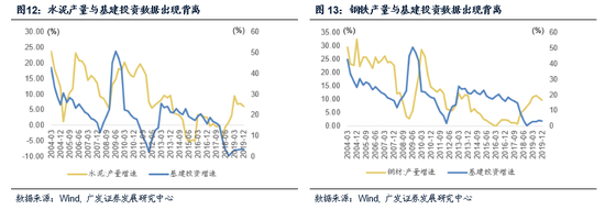 16-18年的基建周期中,宏微观数据有一定程度背离。我们看到宏观指标快速下降而上市公司数据仍然平稳,,微观指标如挖掘机销量、钢铁、水泥产量一度比较活跃。基建投资完成额这一指标的数据有效性在2018年之后可能有所降低。这也印证了前面我们所说的统计制度改革与数据挤水分带来的影响。