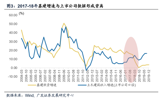 统计制度改革一方面提高了数据统计质量,另一方面也使得改革前后存在统计口径不可比的问题。2018年以来基建投资增速的大幅下降,固然存在政策边际收紧、投资力度收缩的因素,同时也是统计数据挤水分的结果,这一点从宏观指标与上市公司数据的对比中可以看得更明显一些。