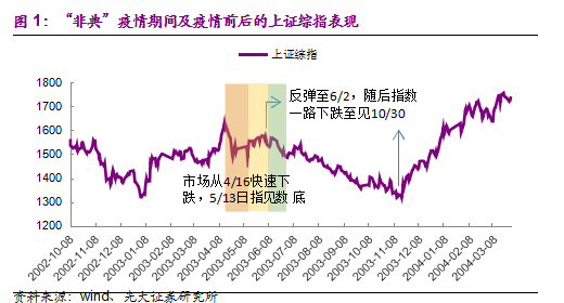 l 2003 年 6 月 3 日-6 月 24 日:疫情后期。“非典”疫情继续缓和,但货币政策转紧等不利因素叠加投资者对经济数据的悲观预期导致市场下跌,这一时期上证综指下跌 4.1%。