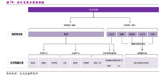 我们在过去的报告中曾经明确提出,社交电商的本质就是“人”这一元素在线上购物体验中的重现;而“导购员推荐”“闺蜜推荐”等线下场景的线上化则必然将过去消费者的线上计划性需求向非计划性需求延展,从而打开电商消费的新空间。(详细分析请参考 2019 年 4 月发布的报告《社交电商:流量红利末期的新机会》)社交电商从模式上可以分为: 1/ 以“线下导购”为原型的直播电商带货模式;2/ 以“闺蜜推荐”为原型的社交私域推广模式;